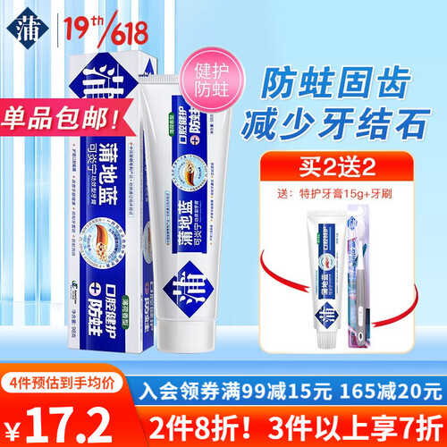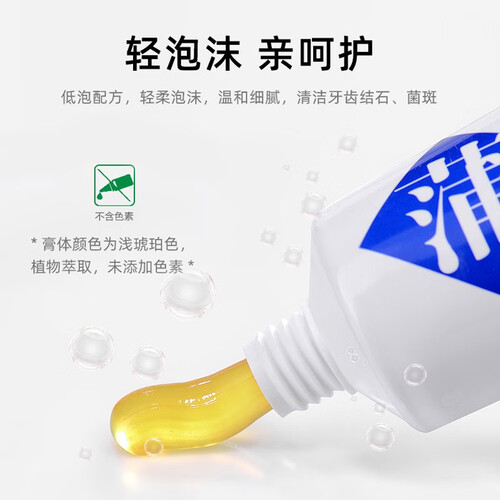 蒲地蓝活性精华含有约76种活性成分,有效缓解多种口腔问题;微量含氟强化坚固牙釉质,水合硅石温和摩擦减少表面菌斑滋生。