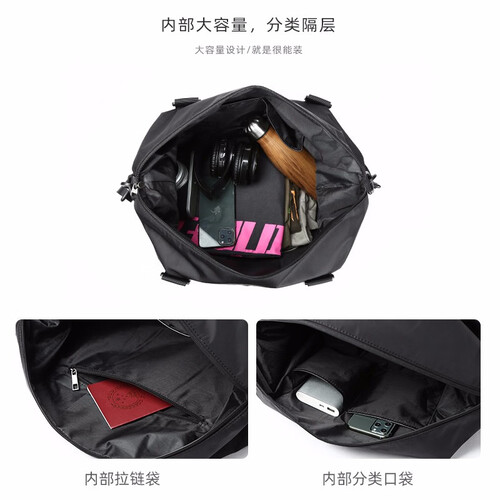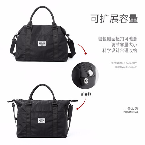 采用防泼水面料制成,经久使用不损坏,侧面设有可调节扩容扣,可科学调节容量大小,舒适便捷。