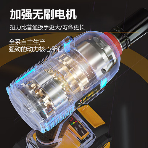 无刷纯铜电机,超大扭力可轻松扭轮胎,且耐磨耐用;搭配按压开关灯设计,在阴暗环境里方便继续完成工作,显得贴心实用。