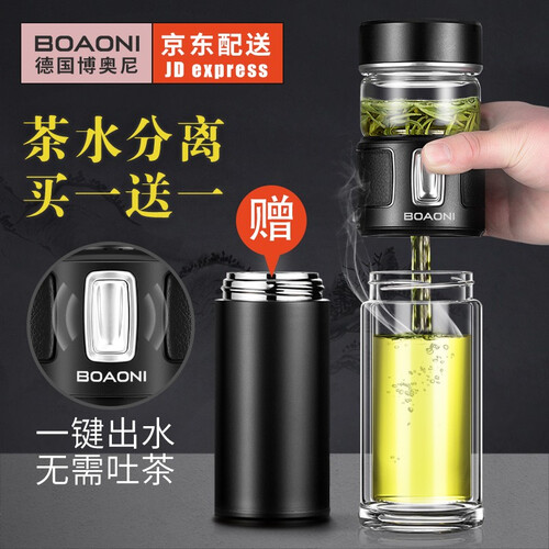 博奥尼 不锈钢茶隔大容量玻璃杯