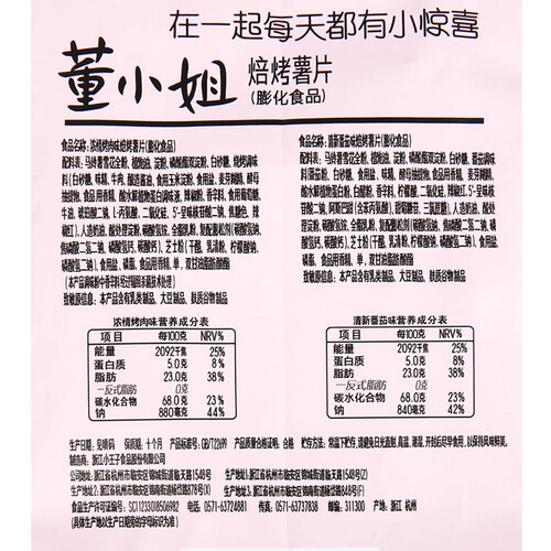 以进口优质马铃薯作为原材料,有着诱人的金黄色泽,吃起来咔嚓咔嚓响,散发出淡淡的诱人香味。薯片中间条纹勾勒,独特又美观。