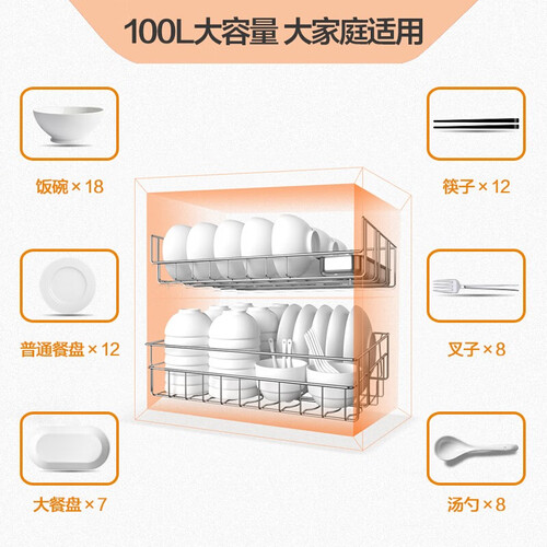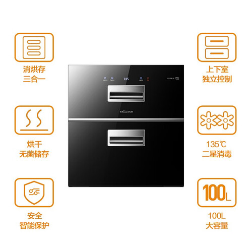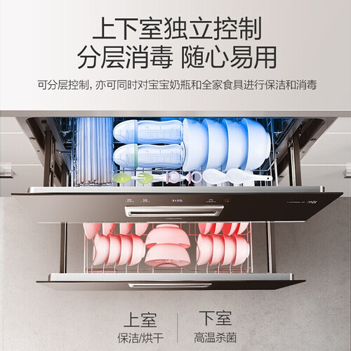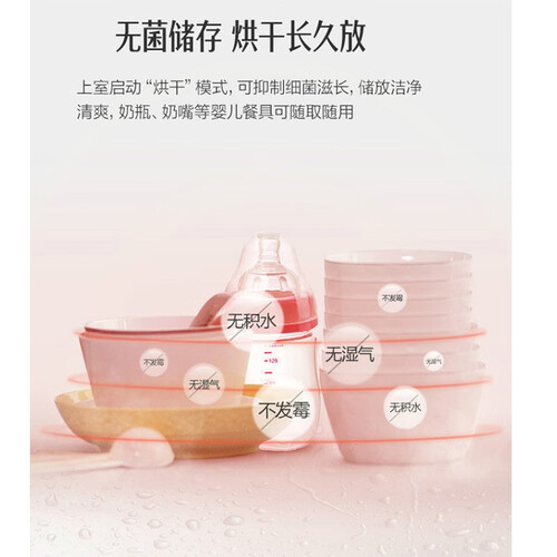 集消毒、烘干、存放功能于一体,一机多用,省钱更加省心。启动“烘干”模式,可保持餐具持久洁净,能随取随放。