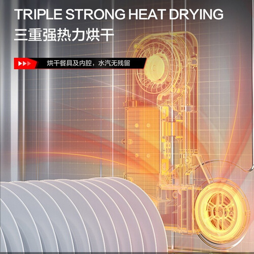 拥有三重强热力烘干,可迅速烘干碗碟无水汽残留,无异味,保持干燥洁净,采用巴氏鲜奶消菌原理,去油污效果更好。
