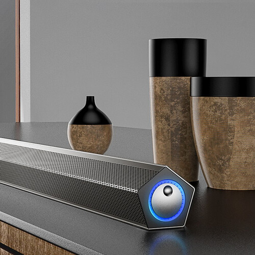 采用多孔的大面积金属网面设计,有效还原音质。且功能多样,具有独立旋钮,可以调节开关、音量等,满满科技感。