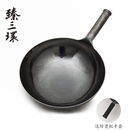 臻三环 手工锻打无涂层炒锅