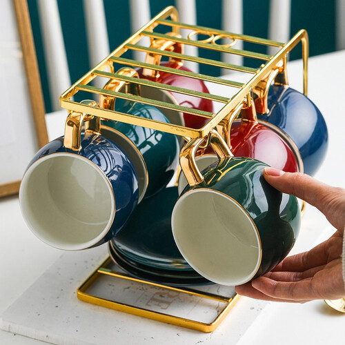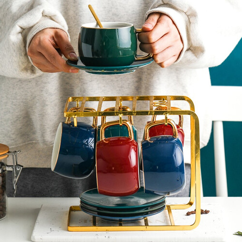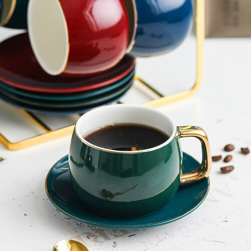 咖啡杯采用流线型设计,杯肚圆润光滑,红色、蓝色和绿色相搭配,便于区分更美观。质感细腻,不易吸附污渍,一冲即净。