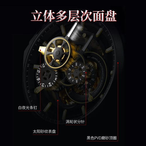 立体多层次面盘,带来立体视感,更显高级感和独特,上腕吸睛效果拉满。表壳采用PVD磨砂工艺处理,刮蹭不易留下痕迹。