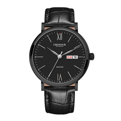 40毫米的简洁大表盘搭配全自动进口机械机芯,给手表提供稳定的动力支持。优质齿轮表冠,彰显非凡品质。
