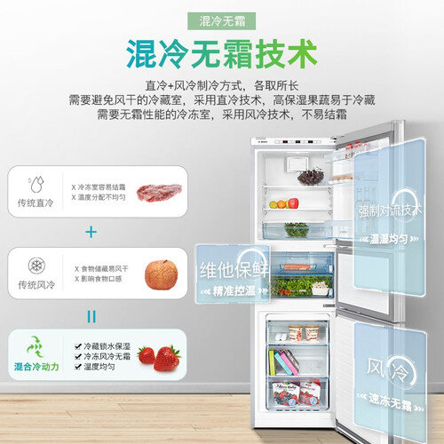 采用混合冷动力技术,不易风干食物,远离霜冻困扰,持久维持理想湿度。274L分区设计,灵活储存不同食材,避免串味。