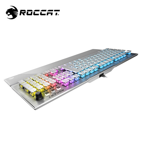 采用扁平式较低按键高度设计,符合人体工程学,适合长时间使用。同时运用AIMO照明技术,照明的亮度效果好,夜间操作也精准。
