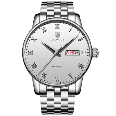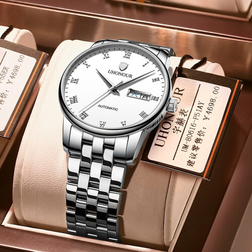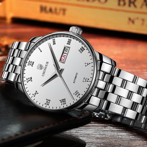 简约大气的表盘加以罗马刻度点缀,佩戴腕间更加别致吸睛,结合日历视窗设计,便于您精准把握时间,提前规划行程事宜。