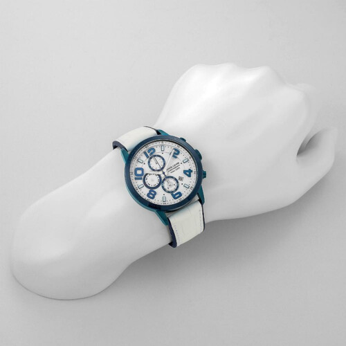 采用炫酷的色彩进行搭配,更能丰富整体的层次,吸引你的眼球。而且三眼计时表盘设计,佩戴起来更有个性。