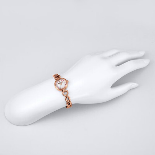 采用了镂空的链式表带结构,整体造型更显优雅气质。而表盘上点缀了彩钻刻度,亮眼吸睛的同时,佩戴上身更不俗品味。