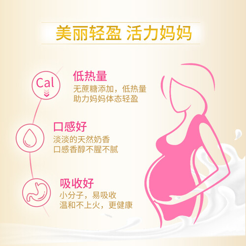 奶粉中的DHA协同维D成分,可以助力胎儿多维发育,妈妈一人喝两人补;小分子的营养成分,好吸收不上火。