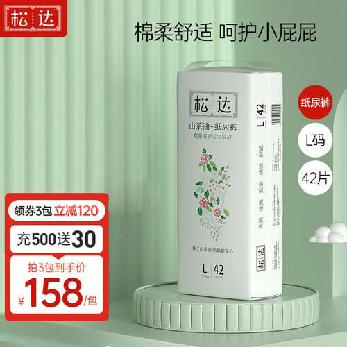 甄选优质山茶油,呵护宝宝娇嫩臀肌。形成透气保护膜,减少纸尿裤对宝宝肌肤的摩擦。含有高分子复合芯体,吸量更大。