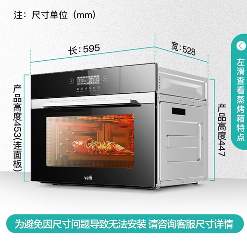 这款蒸烤箱自带六种纯蒸模式,不同食材不同蒸法,好吃好操作。箱内特别设计照明灯,即使夜间使用一样能看清。