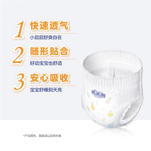 腰部容易出汗的区域设置了排气通道,及时排出内部的闷热湿气,让宝宝屁屁时刻舒爽。双层吸收芯体,牢牢锁住尿液,无侧漏烦恼。