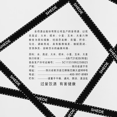 精选优质高粱、大米、糯米等多种谷物为酿酒原料,采用舍得传承百年的酿酒技艺匠心酿造而成。其酒体醇厚绵柔、口感细腻圆润。