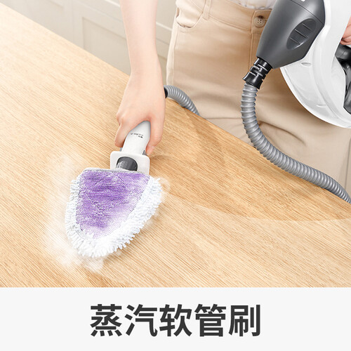 这款家用多功能蒸汽拖把,配备多个清洁头设计,轻松应对家居多场景。采用流线型导气槽设计,助力快速发散蒸汽,速干不留水痕。
