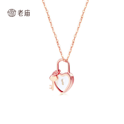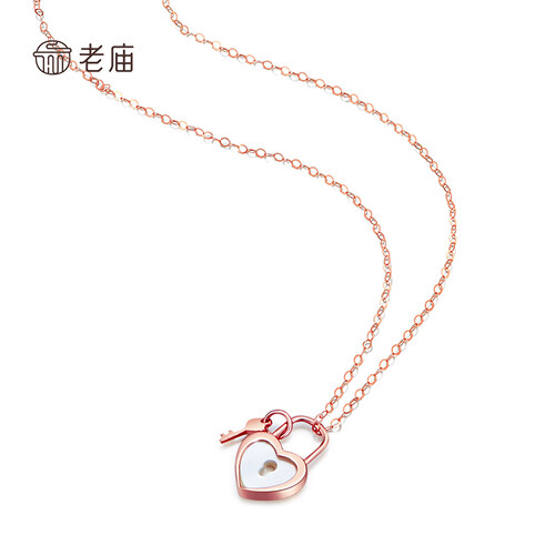 老庙黄金 爱心锁K金项链