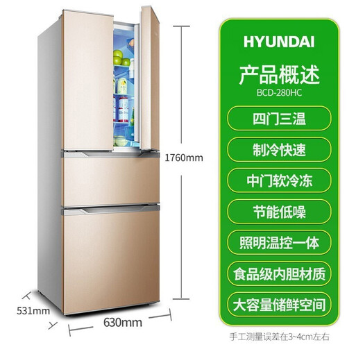 现代 法式多门大容量冰箱