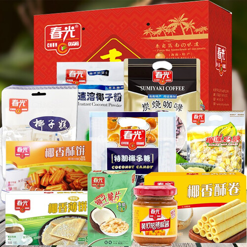 选用海南的椰子作为主要原材料,不管是饼干糕点类还是糖果类都有着浓郁的椰子清香。简约大气的正红色外包装,更显良好的品质。