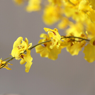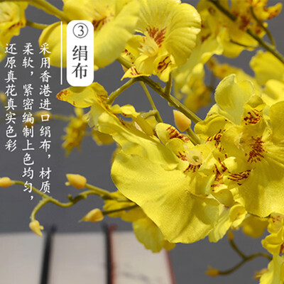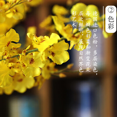 黄色跳舞兰,清晰醒目,为环境增添活力感。结合优质的绢布,色彩鲜明,仿真效果好,更具观赏性。