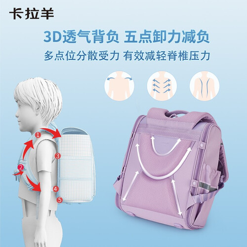 炫彩渐变星空印花面料,时尚美观,颜值出众,孩子更喜欢。多点减负设计,可分散背负压力,让孩子的身姿自然挺拔。