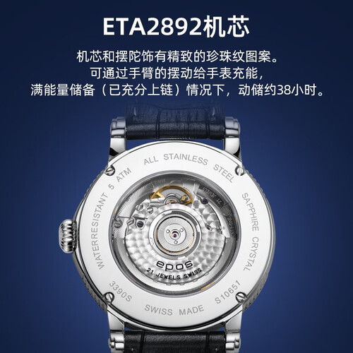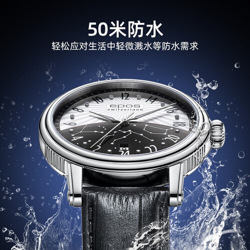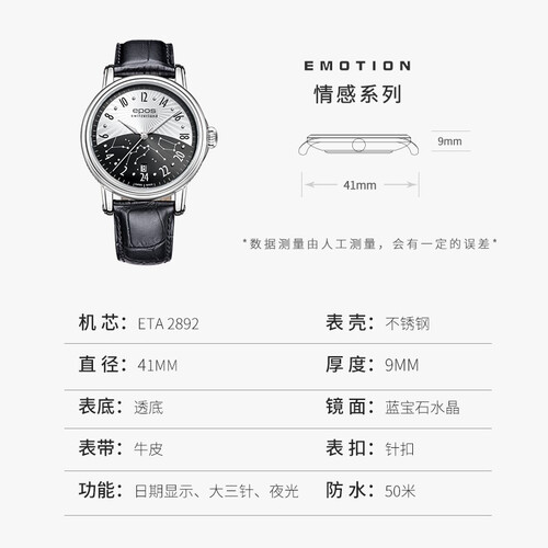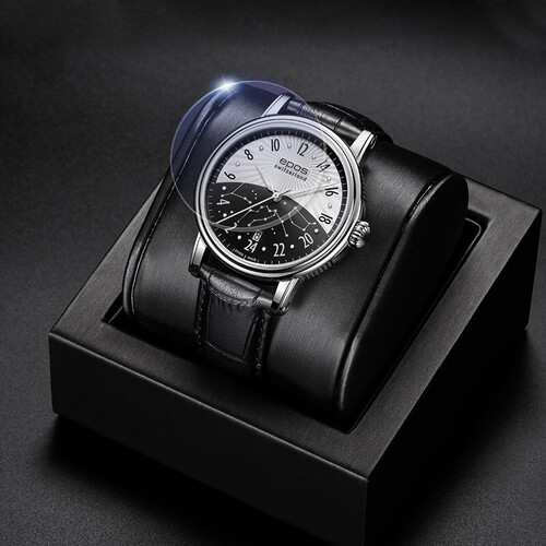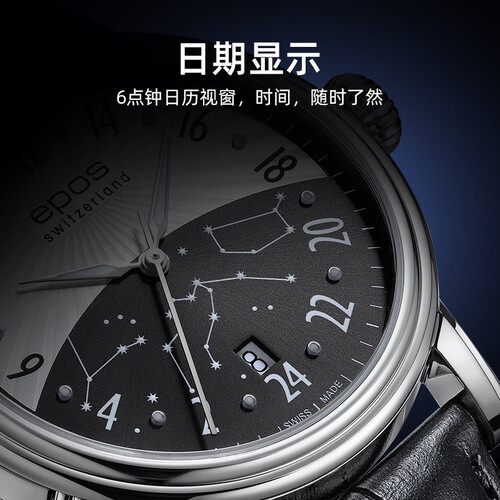 表盘采用黑白拼接,加上夜光的星座图案,美轮美奂,尽显浪漫的艺术气息。双层弧形表壳,圆润大方。
