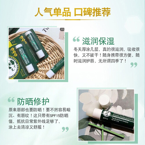 蕴含天然的薄荷精华,可改善唇部不适,同时让嘴唇变得清凉。搭配赤松叶油成分,给予唇部深层的滋养,保护唇部。