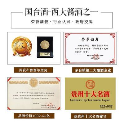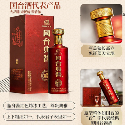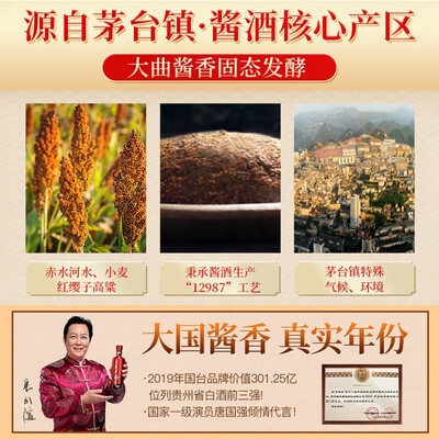采用红糯子高粱、赤水河水和优质小麦为原料,经12987酱酒传统工艺酿制。酱红色瓶身搭载经典烤金工艺,高端质感,馈赠佳选。
