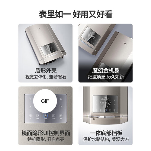 五维一体恒温系统,把水温差控制在微小的范围内,呵护您的娇嫩肌肤。直流变频电机,运行速度快,减少噪音的产生。