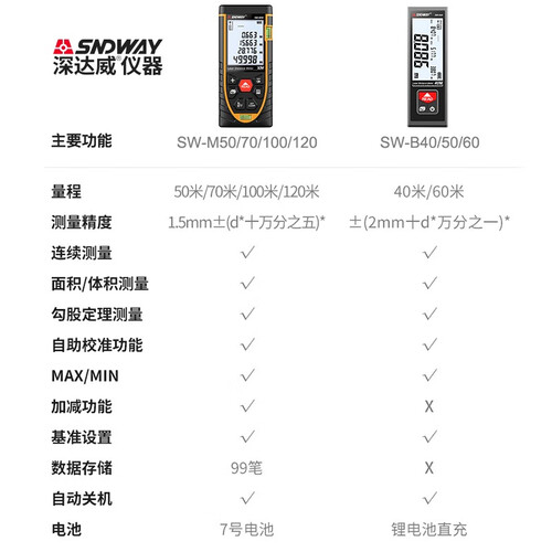 深达威激光测距仪,手持式造型小巧,在狭小空间也能灵活工作,功能多样又高效。一体成型设计,测量度更准确,质量可靠耐磨耐用。
