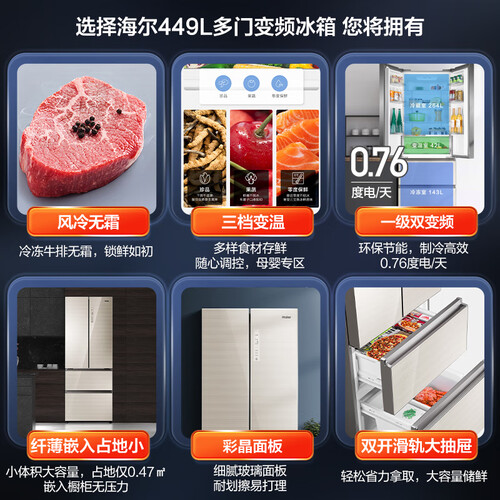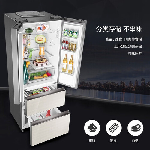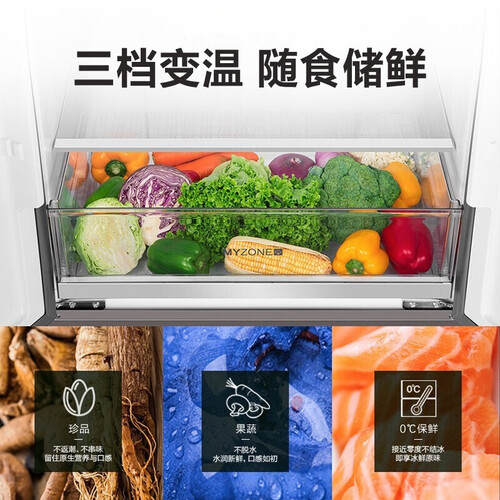 四门格局,合理分类储存,食材不仅可以存放,也可以存放得更整洁。三级变温技术,可以更好保留食物的原汁原味。