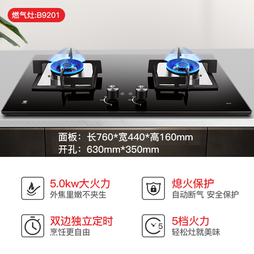 左右独立定时熄火,到点自动断气关火,煲粥熬汤更轻松。搭配熄火保护装置,火焰意外熄灭自动关闭气阀,让你安心走开。