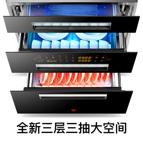 拥有大容量空间,一次可放入更多餐具,无需反复放入消毒。选用加厚发泡层,牢牢锁住热量,保持出色的高温消毒功能。