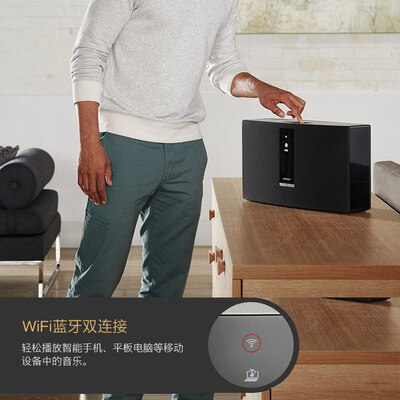 支持WiFi蓝牙双连接模式,可根据自身喜好随心选择,轻松满足不同连接需求。这款音响外观采用纯黑设计,彰显时尚简约风格。