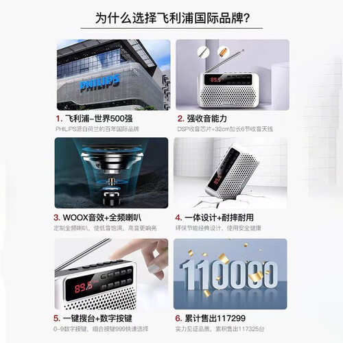 搭载WOOX音效,带来深沉纯厚,强劲有力低音效果,尽显美好音质。采用360度全角六节天线,使信号更加稳定清晰,尽情畅听。
