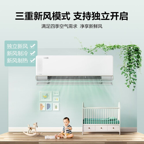 拥有三重新风模式,空气新鲜洁净,轻松满足一年四季使用需求;大1.5匹的设计,适用于15至23㎡的空间,多场景适用。