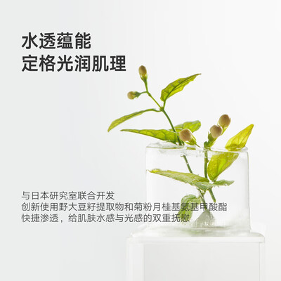 蕴含白芍药提取物,改善角质功能,增加皮肤含水量,焕发水润光采。另外添加甘草酸二钾成分,击退暗沉,打造亮泽肌肤。
