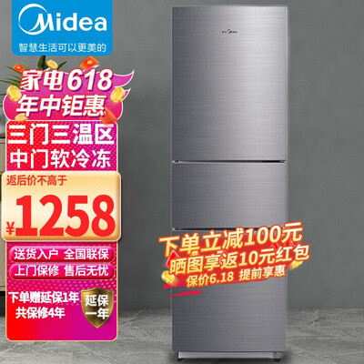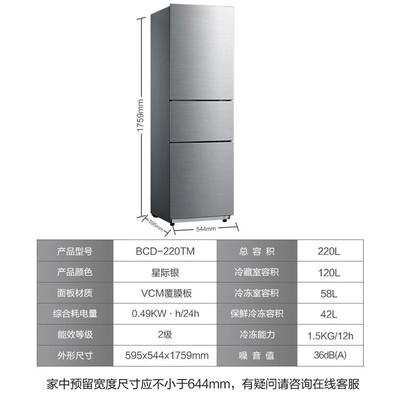 经典三门设计,实用装饰品很百搭,颜值很高时尚简约。节能省电低耗能,低噪音运行不干扰,每天都能很省心。