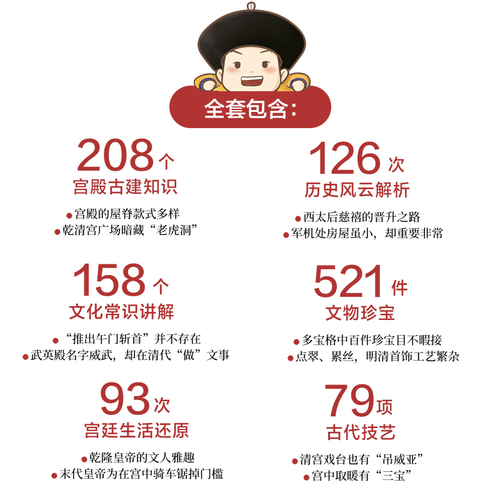 这套书采用分类介绍的方式,用通俗的语言和形象的画面,为孩子介绍故宫文化,让孩子了解中华民族千年智慧的结晶。