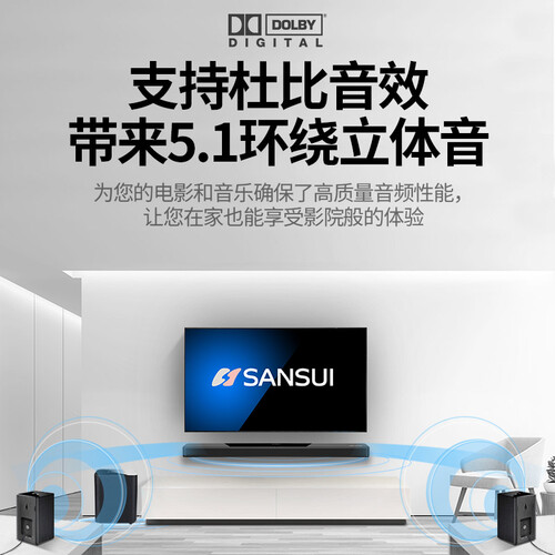具有5.1立体环绕声效,音频高清立体,在家就能享受影院般音效。采用玻璃顶部与金属网罩外观设计,质感非凡,简约大气。