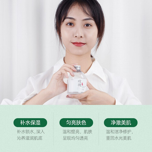 采用天然纯露水,温和不刺激,更容易被肌肤吸收,迅速补充肌肤水分。加入大马士革玫瑰精华,轻松拥有水光肌。