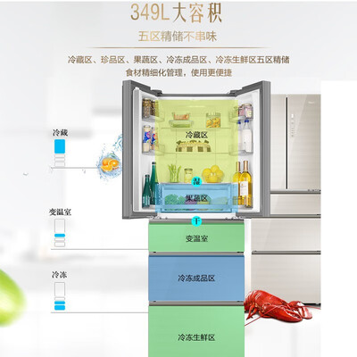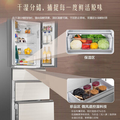 五门精细格局,多温区保鲜,食材定制专属温度,全面呵护新鲜。搭配DEO净味保鲜技术,有效减少食材污染,家人食用更健康。