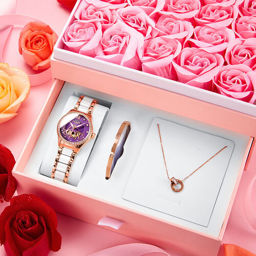 采用陶瓷表带,对皮肤更加友好,呵护你的皮肤。带有夜光指针,在夜间也能清晰读时,任何时候都能获得准确时间。