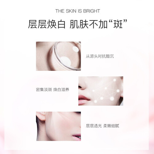 乳白色微乳妆质地,轻松涂抹后,营养充分地被肌肤吸收。以内养外淡化斑点,肤色更加均匀,皮肤逐渐变得细腻。