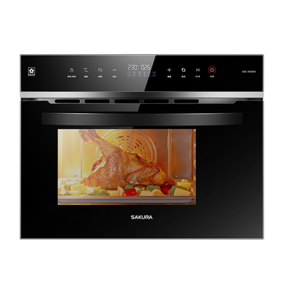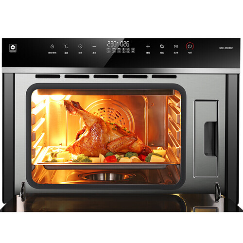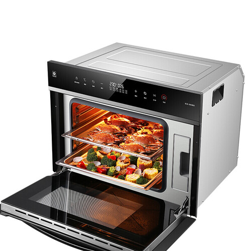 这款蒸烤箱可产生大量蒸汽,使蒸汽不断动态循环,快速而均匀的蒸熟食物,保持食物口感新鲜。玻璃隔热门,有效减少热量传导。