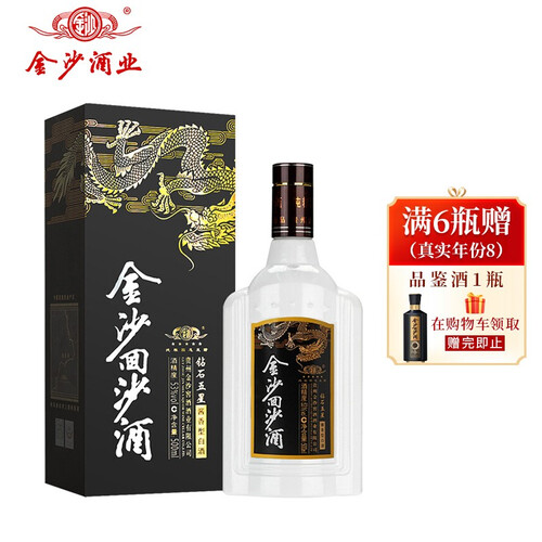 金沙的这款白酒采用五星瓶身设计,搭配雅黑瓶盒,在金龙的点缀之下,雍容华贵,带着淡淡的复古气质。