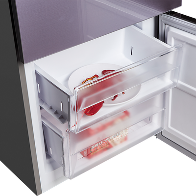 搭载升级风冷无霜科技,清新养鲜,冰箱没有结霜烦恼。-25℃深冷速冻,一键锁住原汁原味,解锁保鲜新姿势。